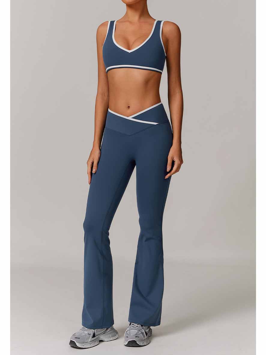 Women's New Cross-waist Sports Suit Female Contrast Backless Tight Nude Yoga Suit Running Fitness Yoga Suit