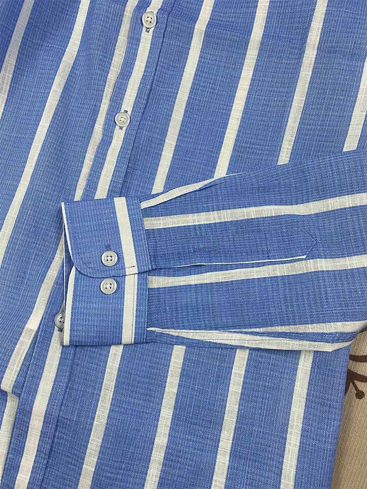 Women's new fashion Joker embroidered slub cotton striped lapel loose long sleeve shirt top.