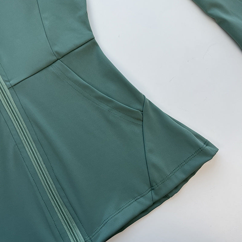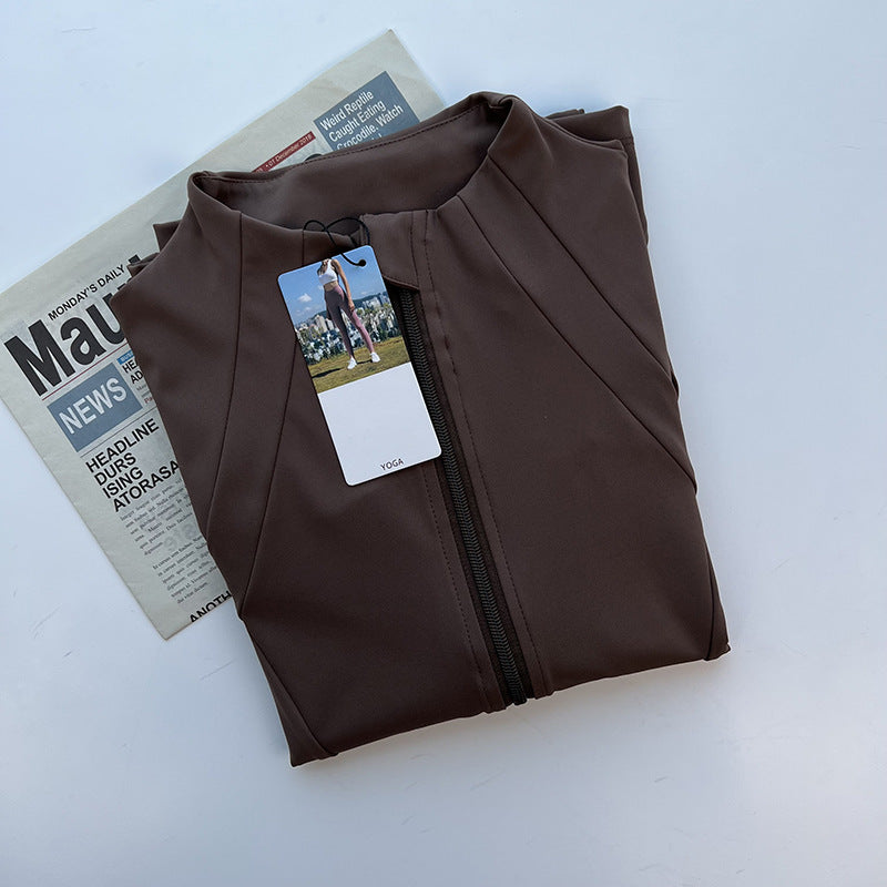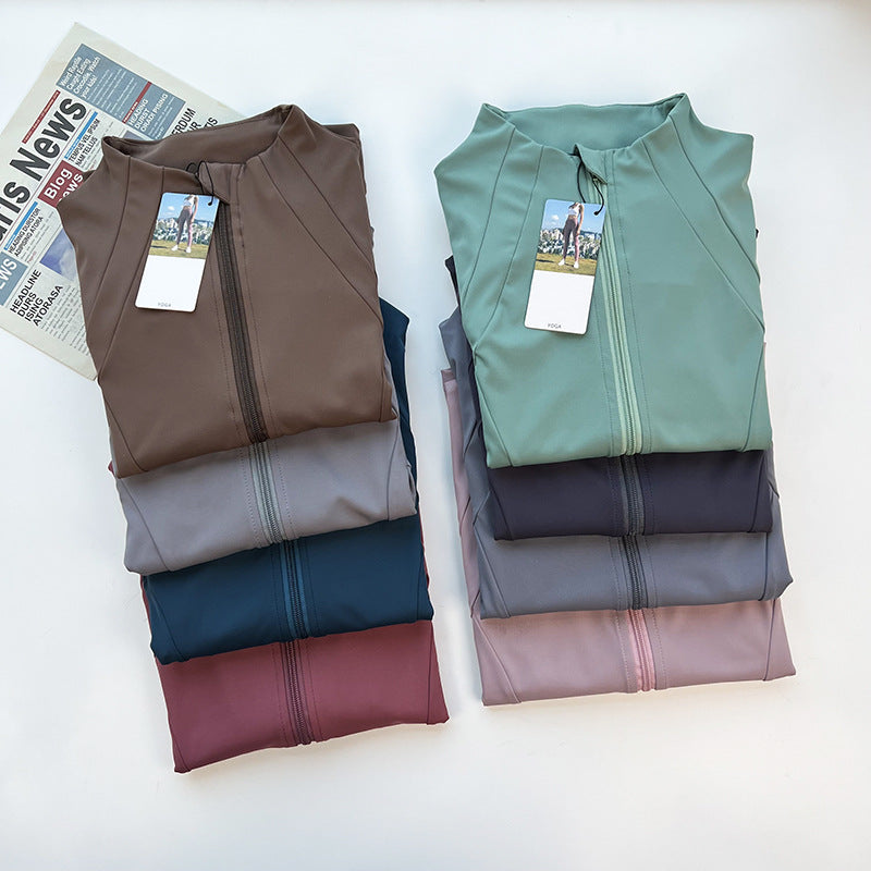Women's New Stand-up Neck Nylon Slim Fitness Coat Soft and High Elastic Sports Cardigan Nude Pilates Yoga Clothes